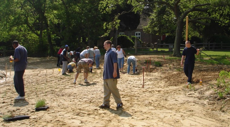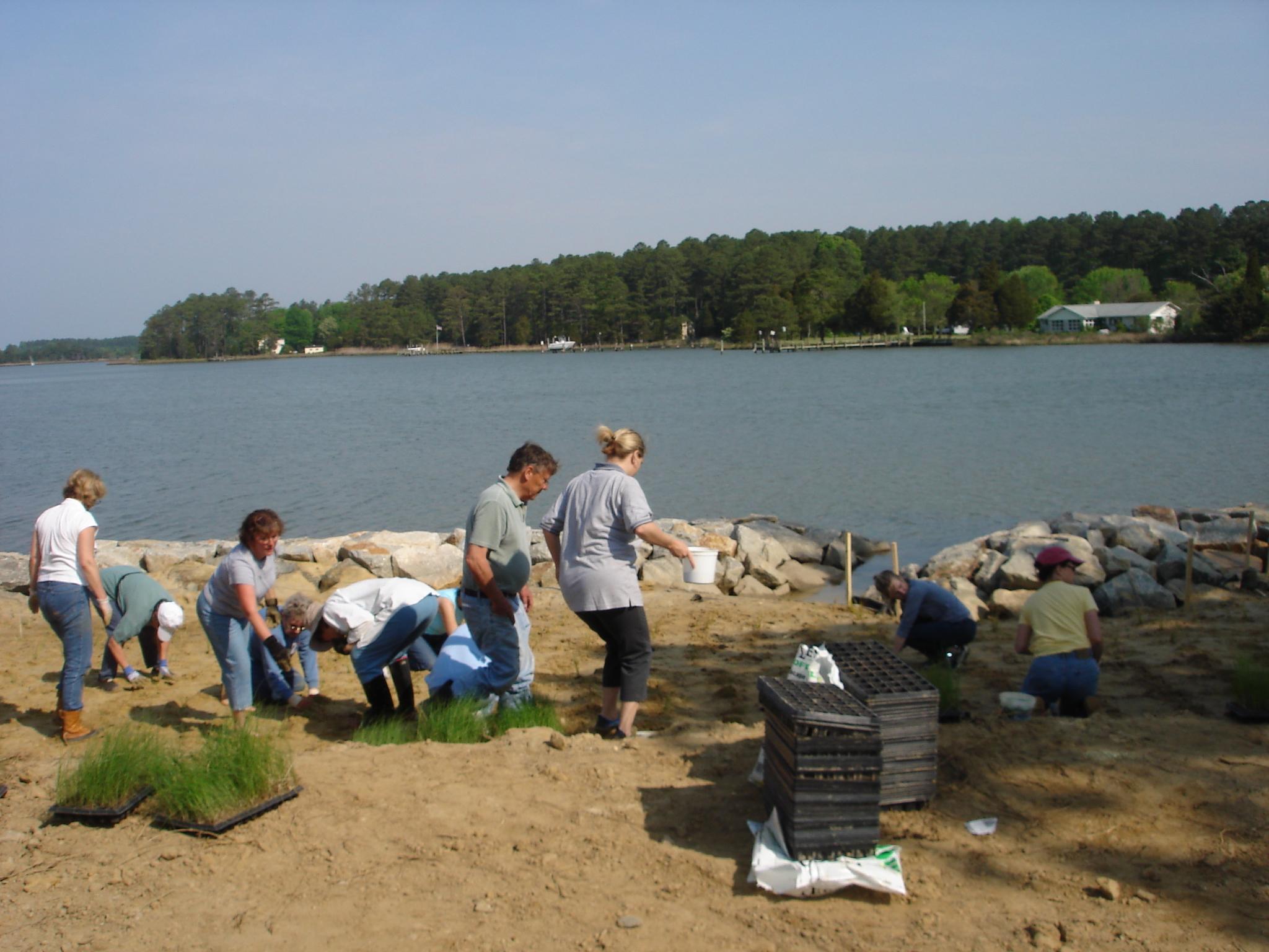 Volunteers completed grass planting on the shoreline and the Bishop blessed the work July 13th, 2008. The grasses have now grown at least TWO FEET and may be viewed during daylight hours at Old Trinity. Conservation Reserve Buffers have also been planted around the farm glebe to improve the quality of water runoff.